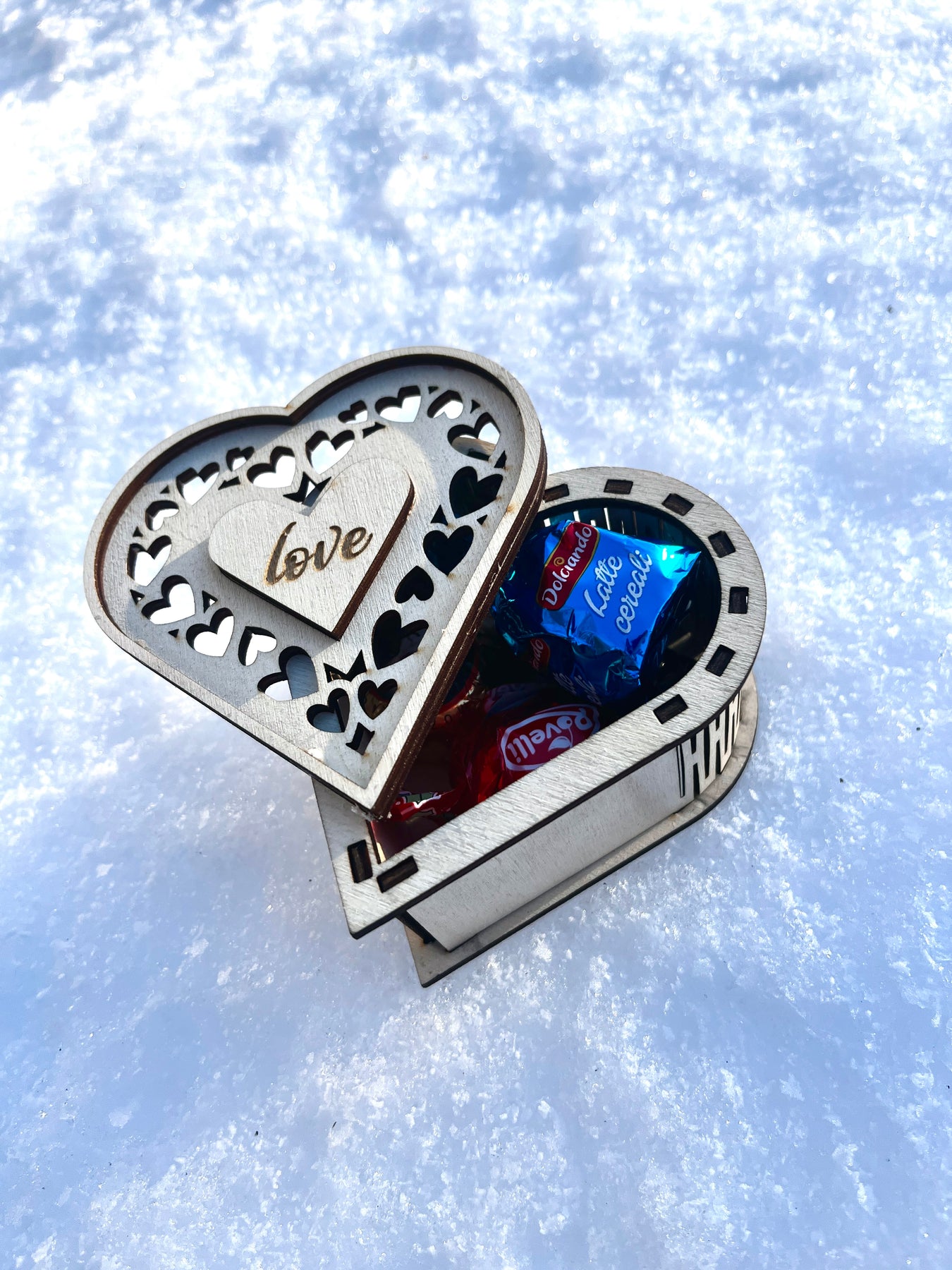 Klasičen simbol ljubezni, ujet v les. Srčki in napis love ustvarjajo občutek topline, nežnosti in romantike. Idealna izbira, kadar želiš podariti nekaj preprostega, a polnega pomena.