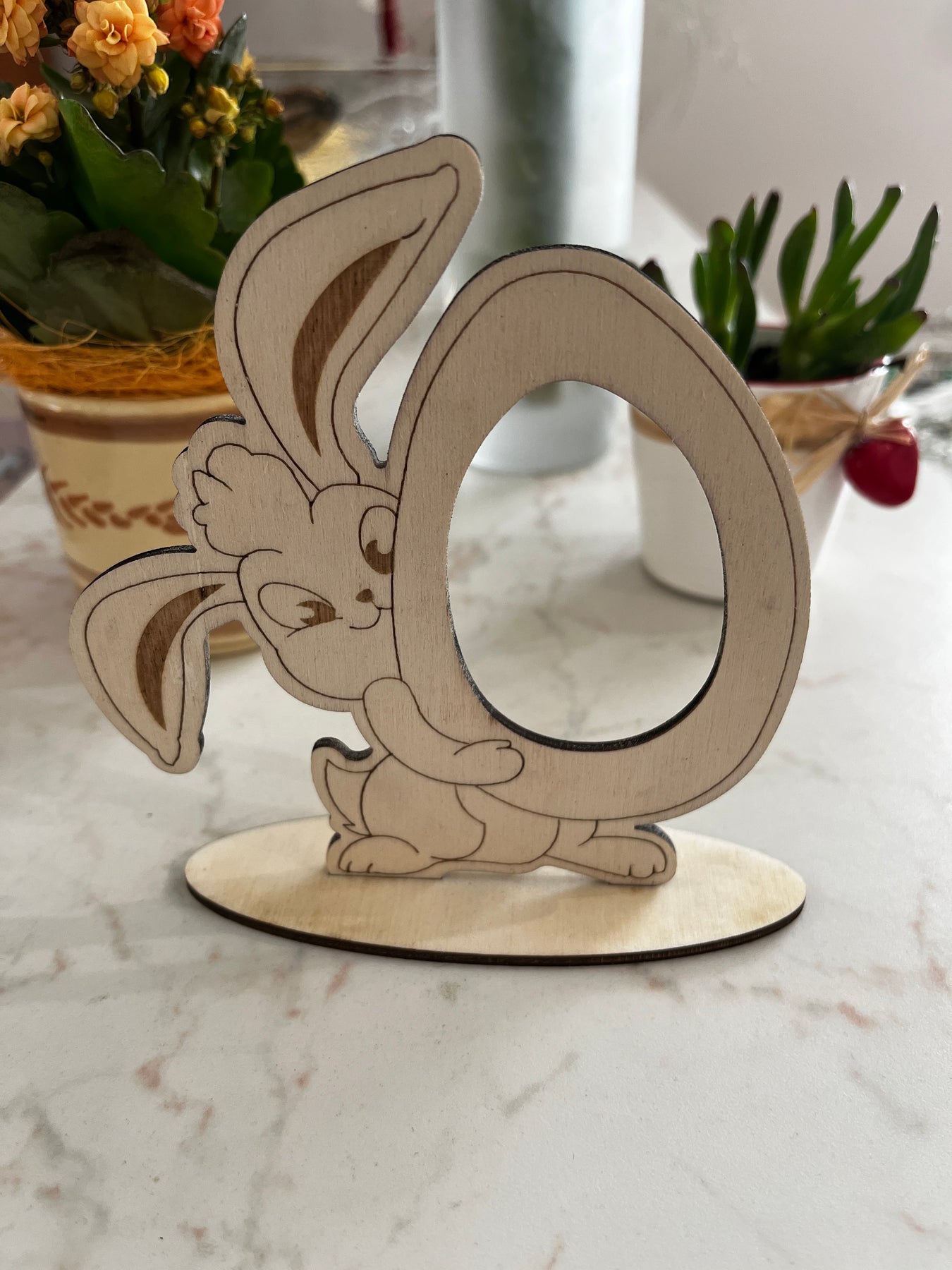 Vsak zajček je natančno izrezan iz naravnega lesa in skrbno sestavljen, da varno in lepo drži čokoladno jajce. Prava izbira za tiste, ki želijo podariti nekaj več – nekaj z dušo.