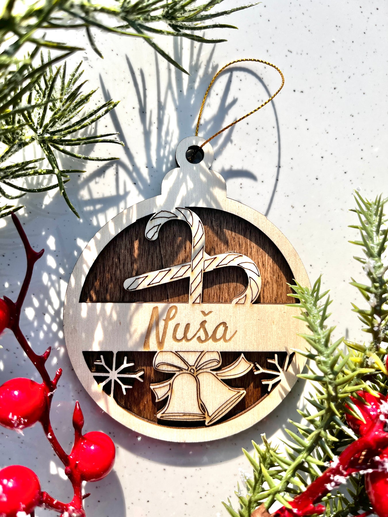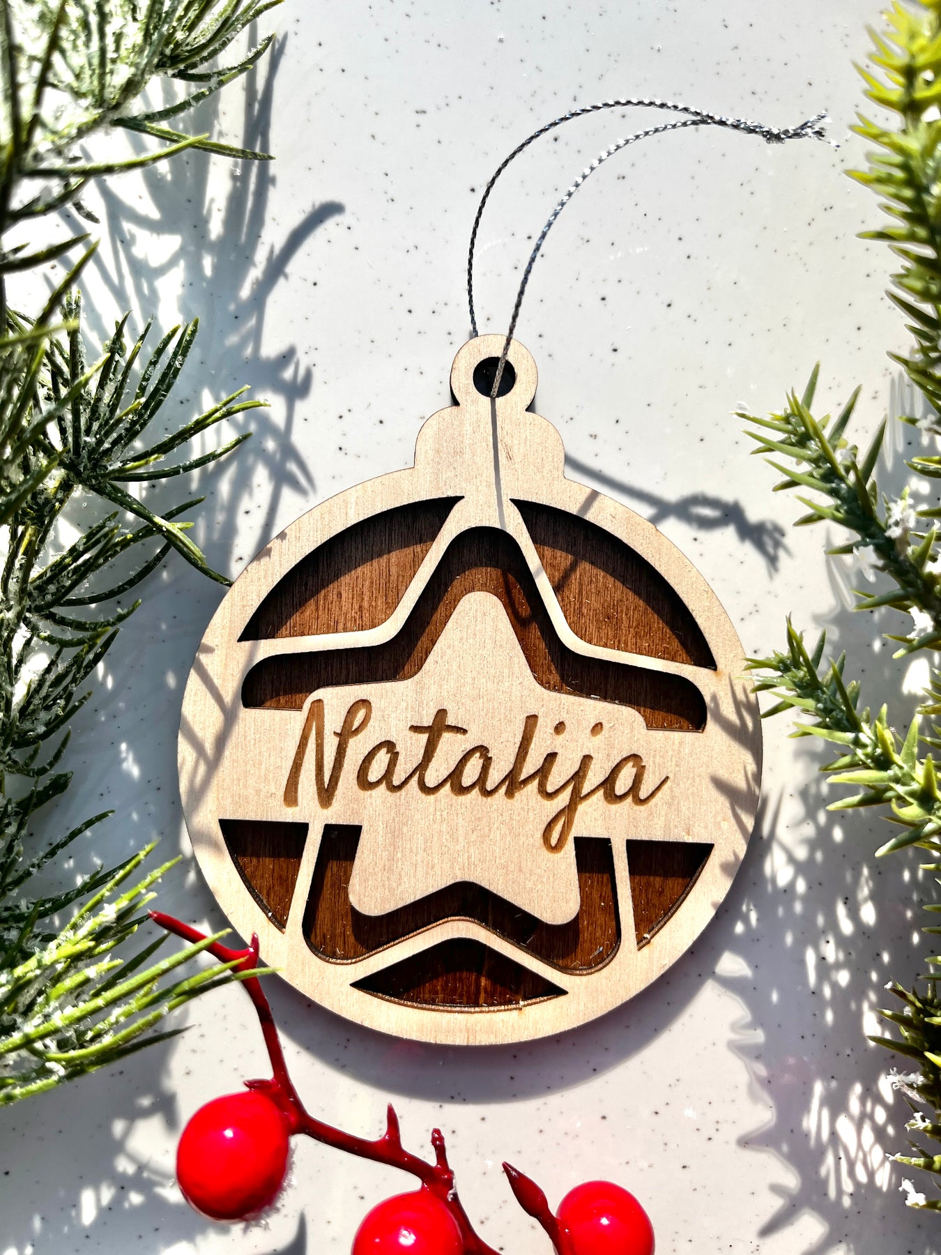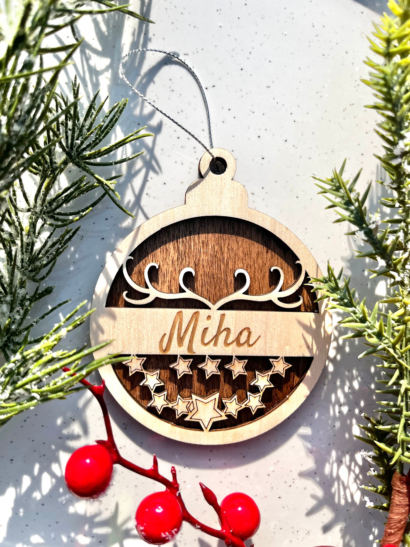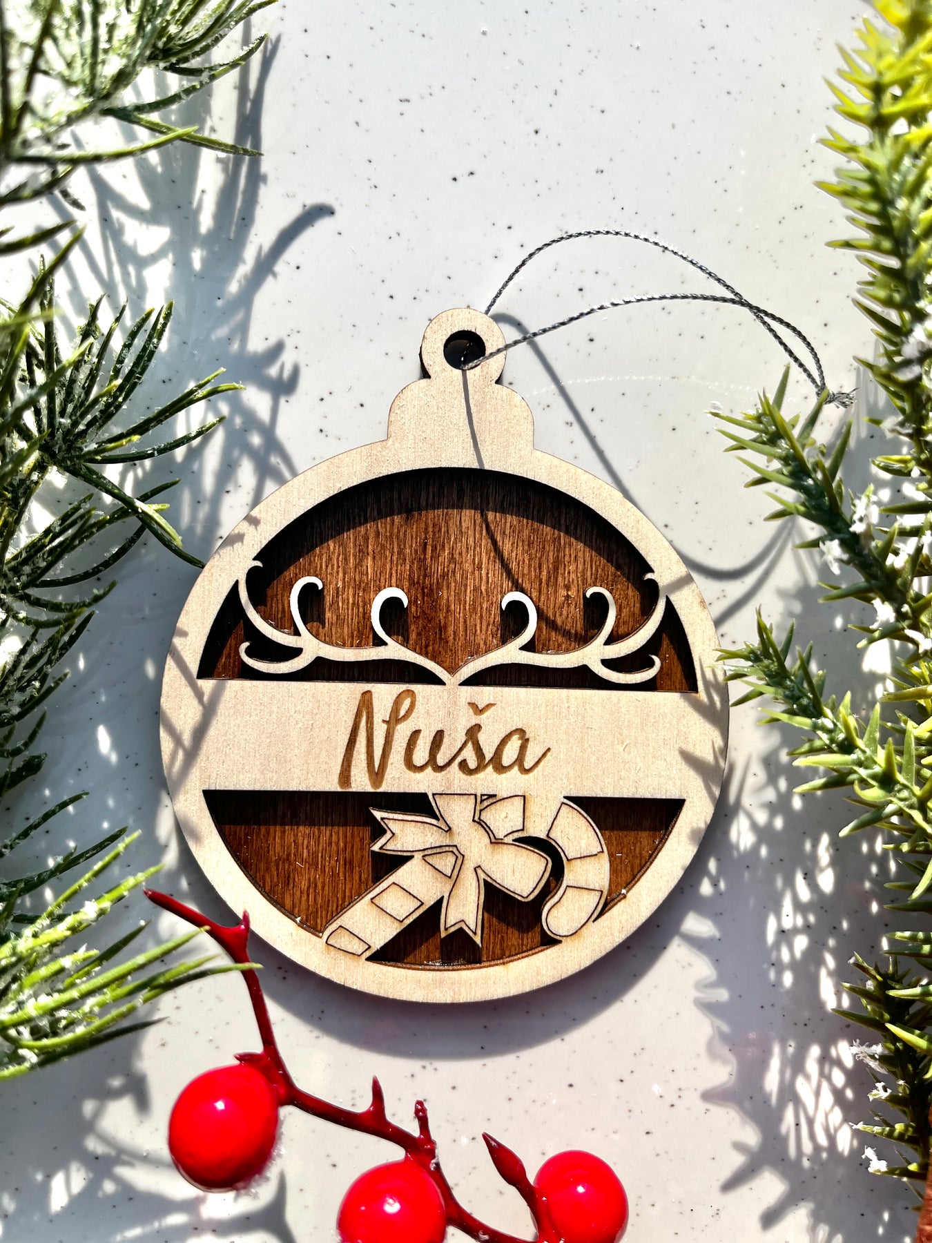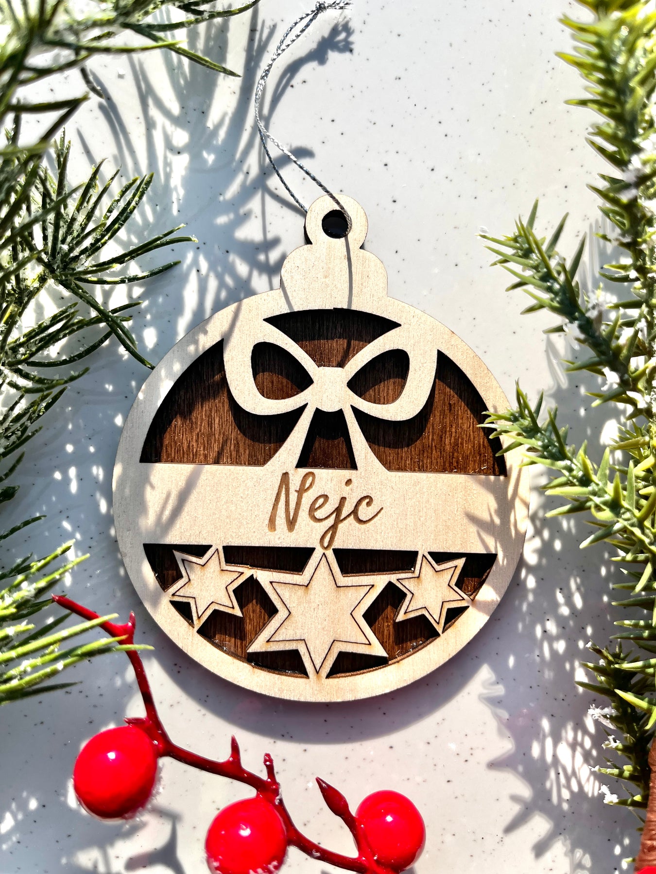 Čarobni leseni božični obesek z imenom