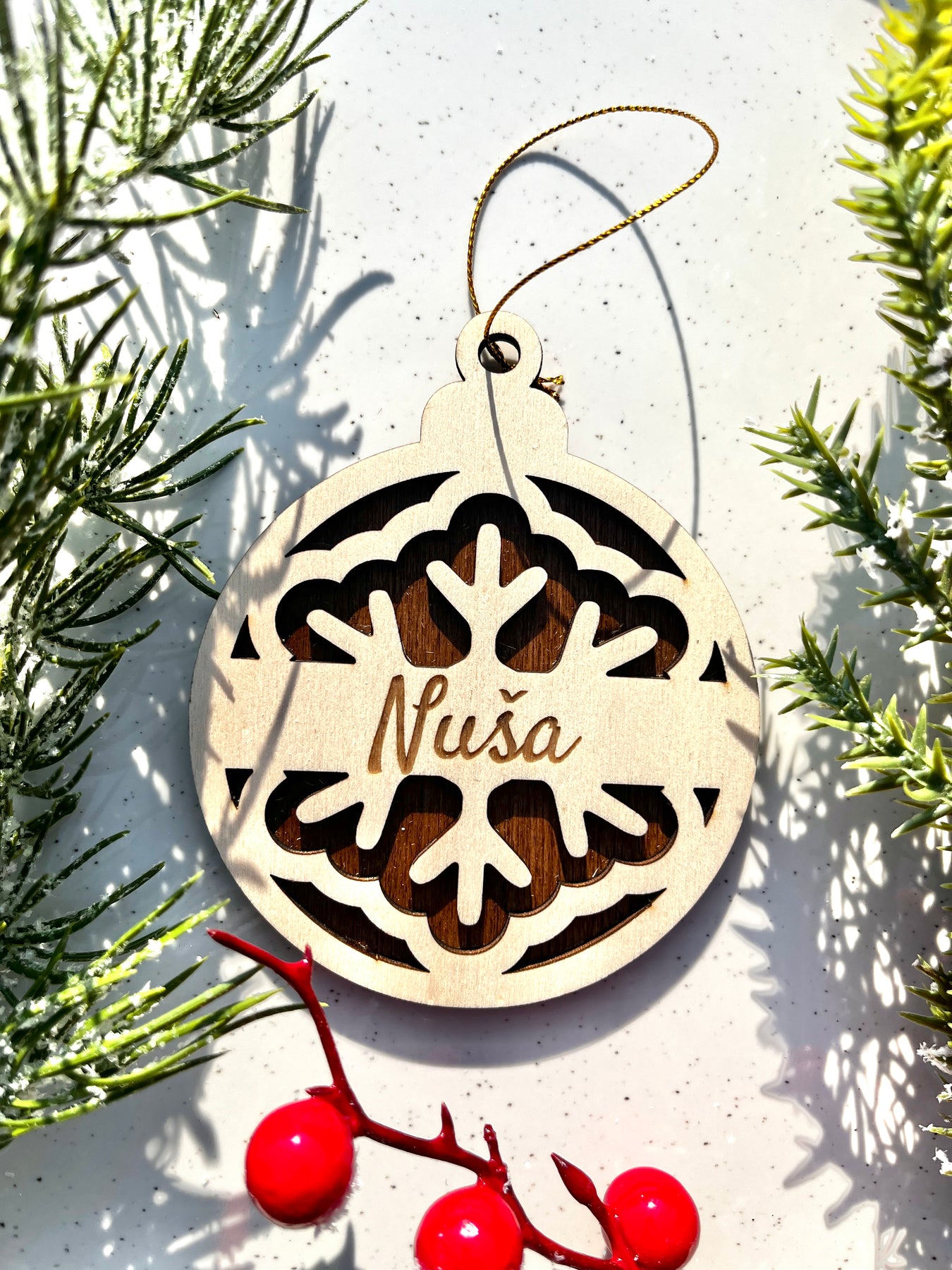 Vsak okrasek je skrbno izrezan iz kakovostnega lesa in dokončan z nežnim dotikom topline.