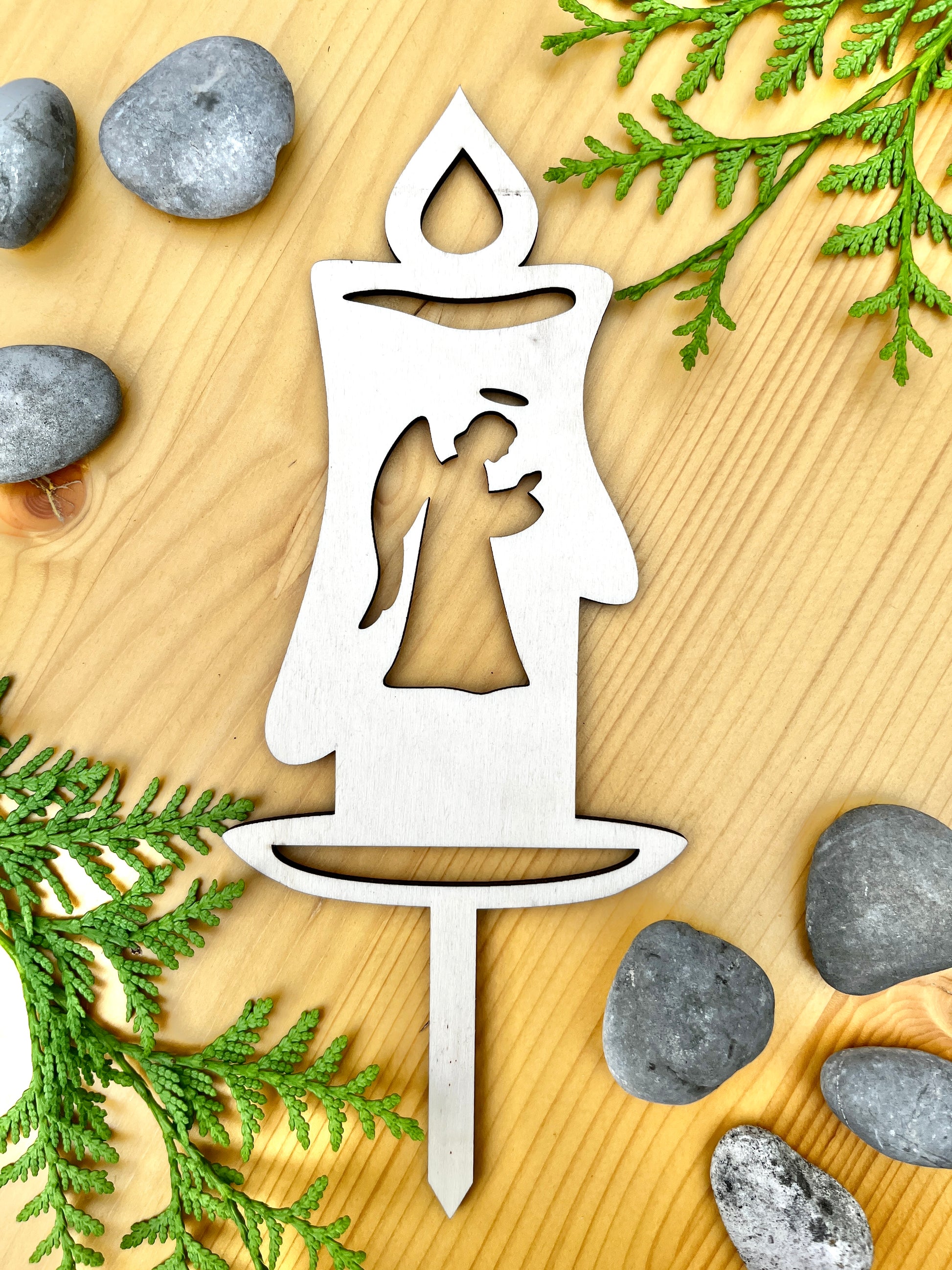 Lesena sveča Angel v molitvi simbolizira zaščito, varnost in tiho spremljanje ljubljenih oseb. Podoba angela z razprtimi rokami izraža molitev in povezanost z nebeškim mirom, zato je sveča primerna kot spominski poklon na grobu. Vsaka sveča je natančno izrezana z laserjem in ročno dodelana – z veliko pozornosti in, seveda, z ljubeznijo.